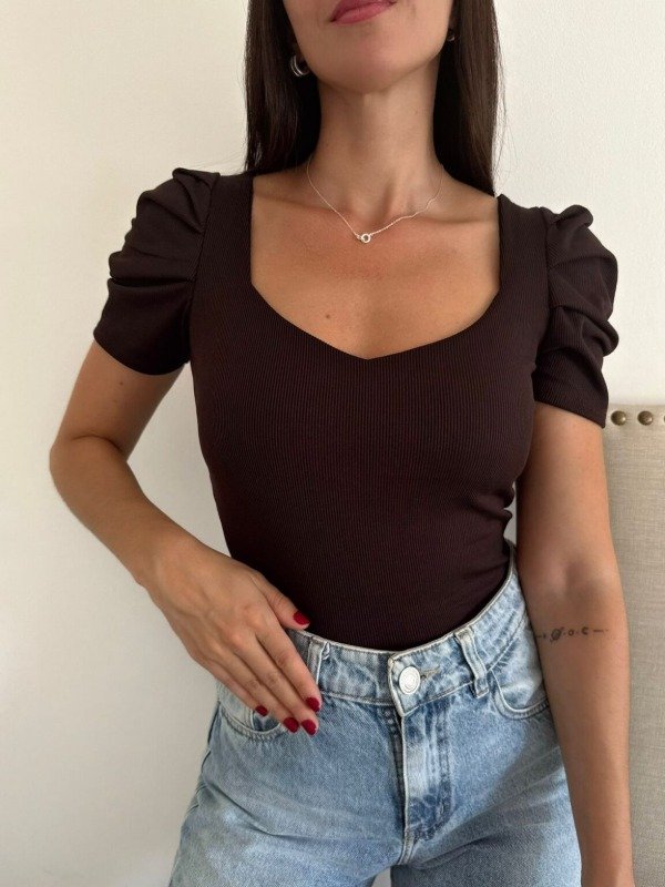 Remera con Mangas Princesa, cuenta con un escote corazon en la parte frontal que le da un toque único y muy sensual! El busto está reforzado con doble tela para un mejor calce. La espalda es abierta. Puede usarse de ambos lados.